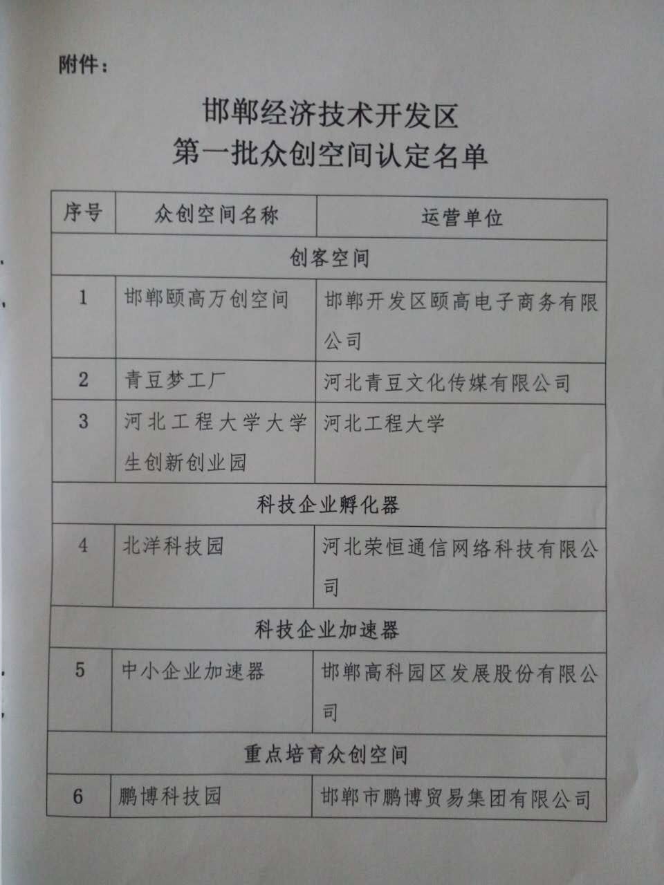 邯鄲高科—中小企業加速器被認定為“科技企業加速器”