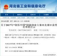 園區企業河北唯沃榮獲2017“創客中國”創新創業大賽河北賽區三等獎
